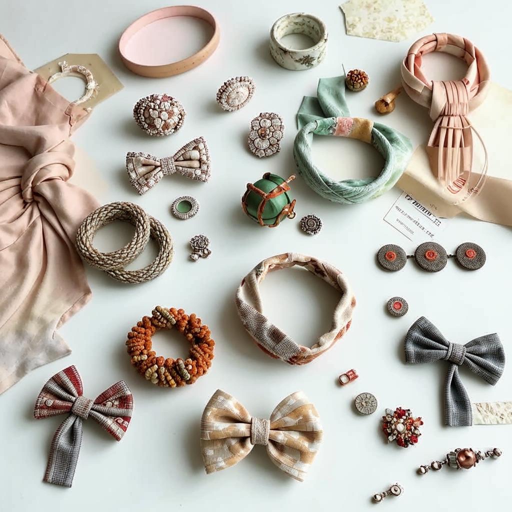 Из ткани можно создавать стильные украшения: браслеты, ободки, банты и броши, заколки и резинки для волос, добавив декоративные элементы, такие как бусины или стразы. Это отличный способ использовать маленькие кусочки ткани.