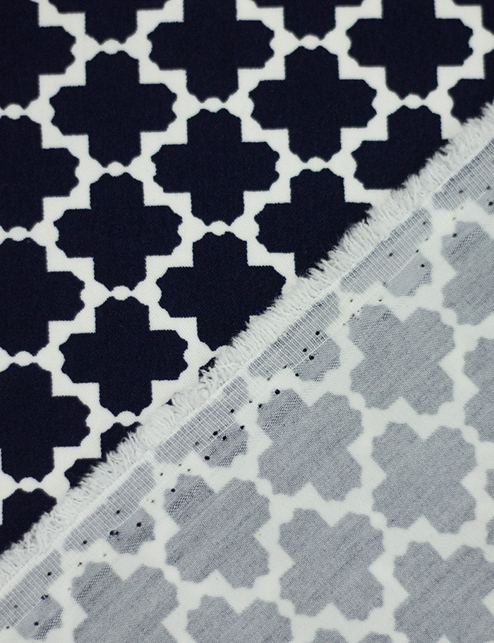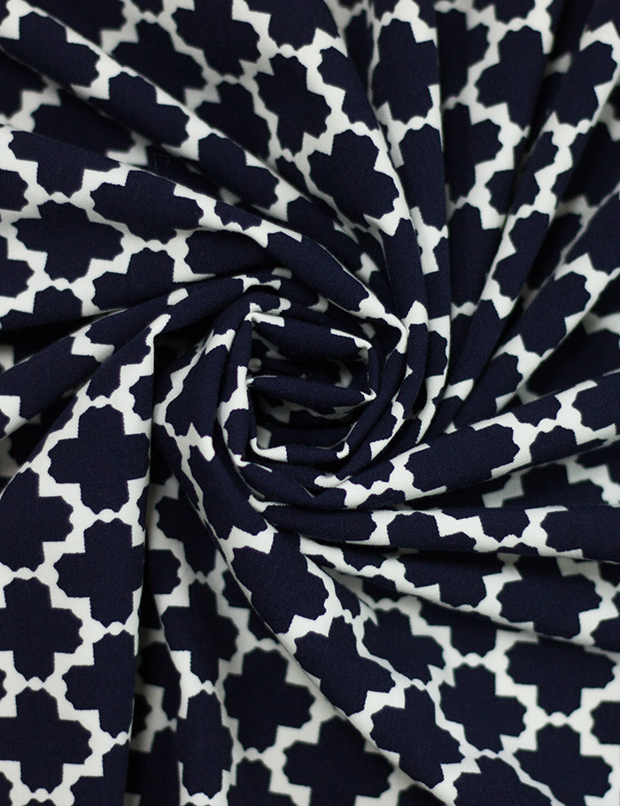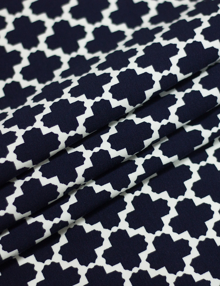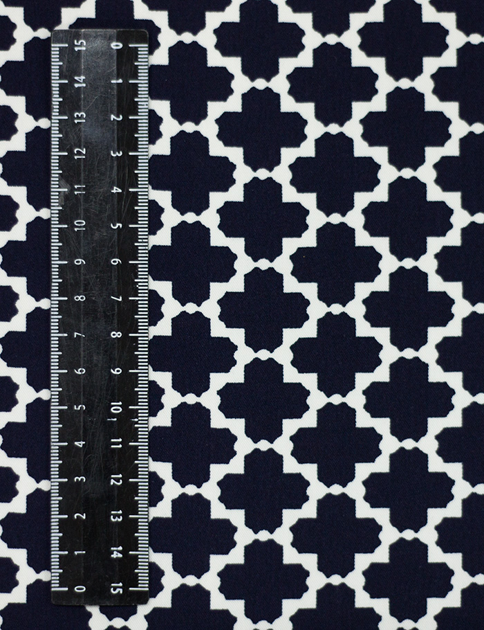 Ткань Джинса стрейч Геометрия, белый+синий