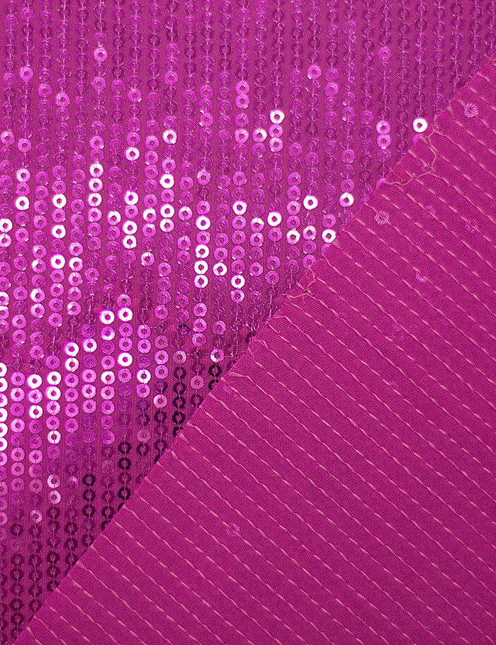 Переливающийся материал, основа которого тонкий трикотаж. Полотно вышито блестящими зеркальными пайетками-кругами, диаметр пайетки 0.3 см. Подходит для декорирования элементов костюма, пошива вечерних нарядов, концертных и танцевальных костюмов.