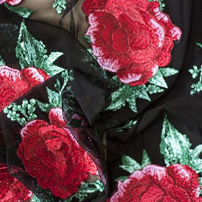 Ткань Кружево-сетка Большие розы на чёрном