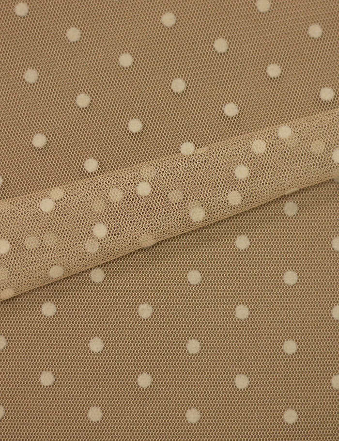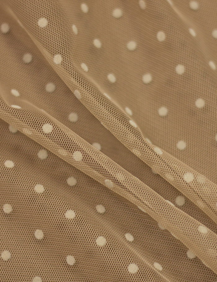 Ткань Сетка флок мелкий горох, бежевый