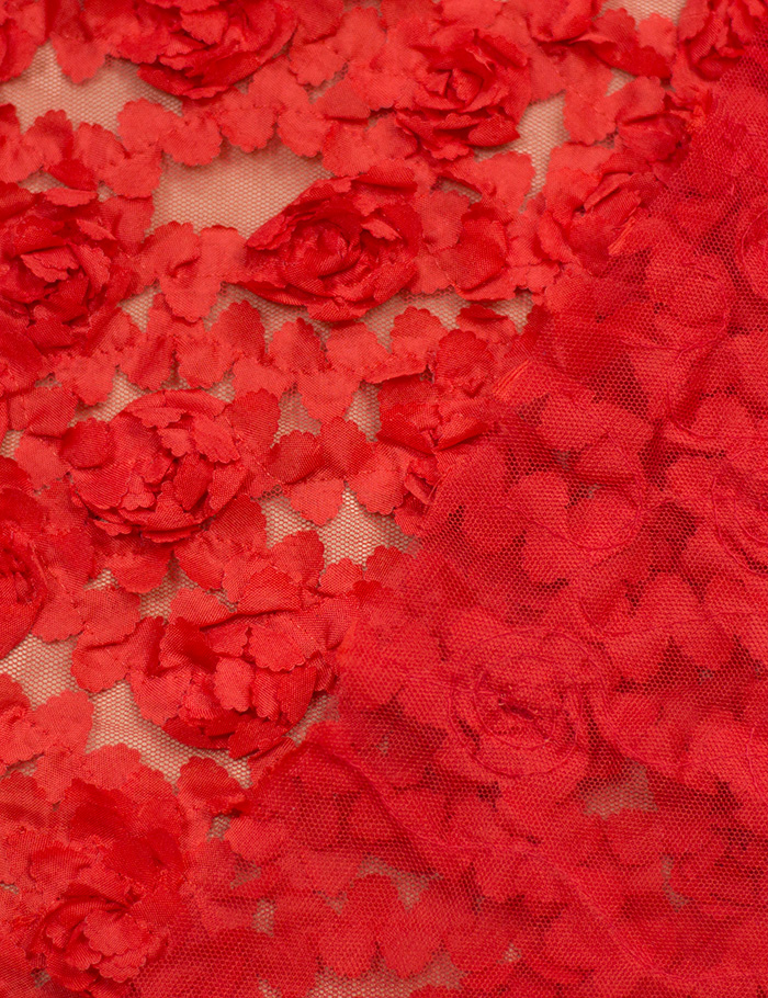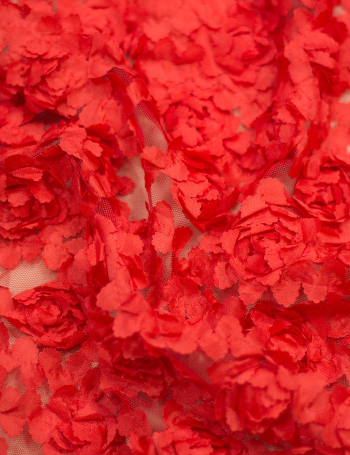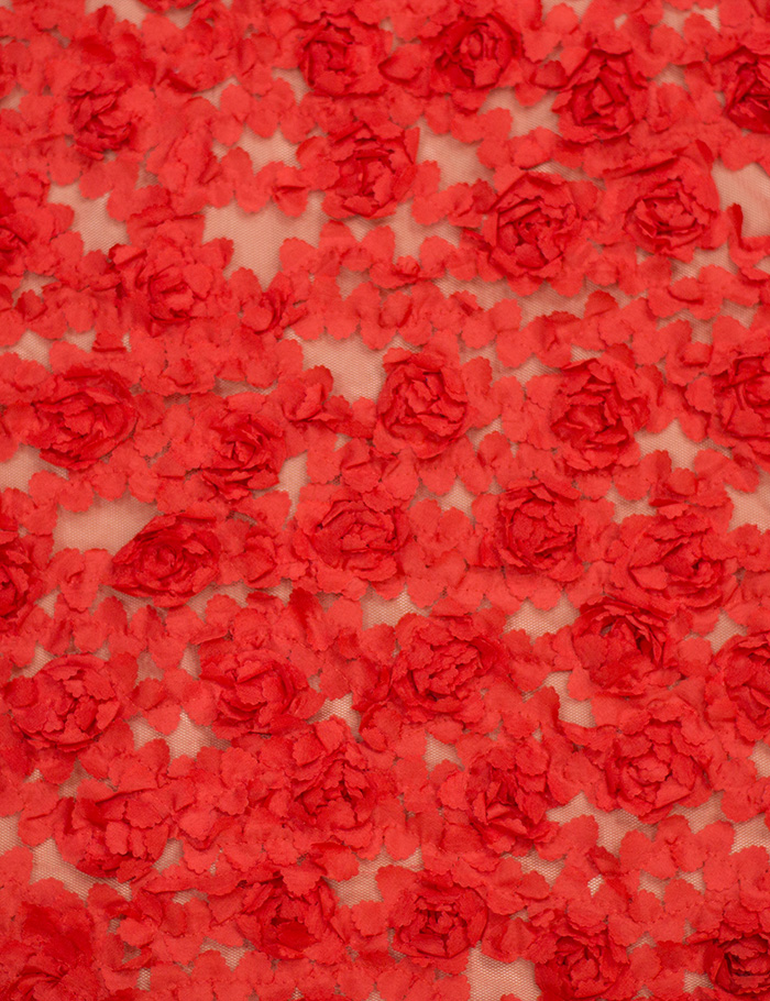 Ткань Сетка объемная 3D Розы, красный
