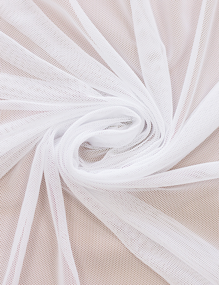 Ткань, состоящее из мелких, нежных ячеек используется для изготовления вставок и некоторых деталей платья, например, невидимой линии горловины. Мягкое полотно великолепно тянется во всех направлениях, приятно для тела.