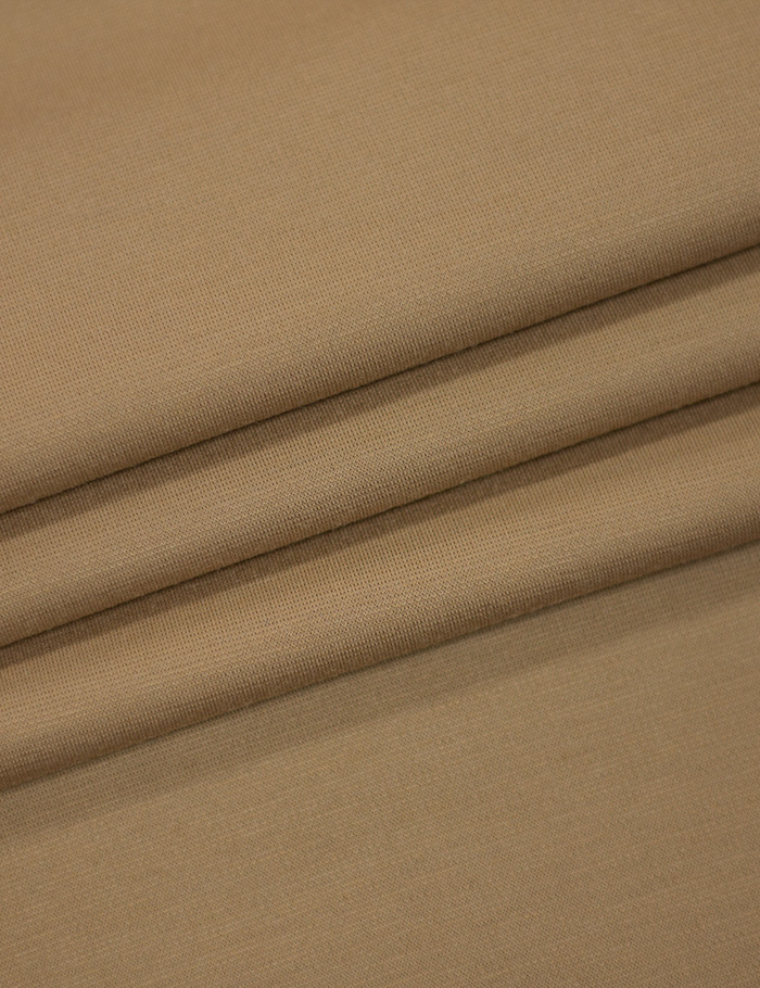 Трикотажное полотно средней плотности с гладкокрашеной отделкой. Лицевая сторона ровная, гладкая, в поперечный рубчик. Изнаночная - мягкая, матовая. Приятная на ощупь ткань. Применяется в пошиве - платья, юбки, жакеты, брючные костюмы и т.д